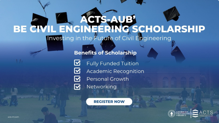 ACTS is proud to announce the opening of applications for a fully funded undergraduate scholarship in Civil Engineering at the American University of Beirut (AUB) for the academic year 2026–2027.