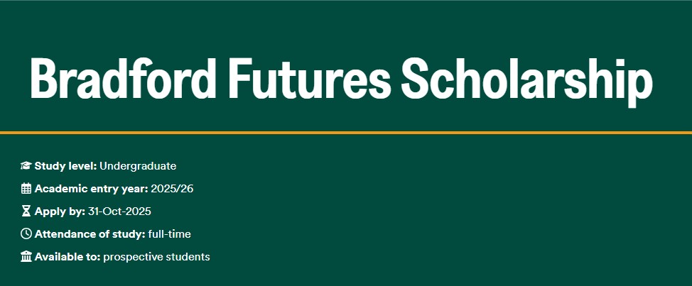 The University of Bradford is offering the Bradford Futures Scholarship for the 2025/26 academic year, designed to support deserving home-fee-paying undergraduate students. This scholarship aims to assist students from underrepresented and disadvantaged backgrounds, as part of the University’s Widening Participation Plan.